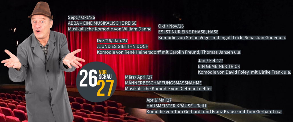 Mit unserem neuen Sondertarif-Abonnement „Komödien Jetzt“ für die Saison 2026/27 setzen Sie ein starkes Zeichen für den Erhalt des einzigen Boulevard-Theaters in Essen. Sie erwartet ein abwechslungsreiches Programm mit beliebten Produktionen und bekannten Gesichtern. Mit „Komödien Jetzt“ bekommen Sie 6 Komödien bei freier Termin- und Platzwahl für nur 141€.